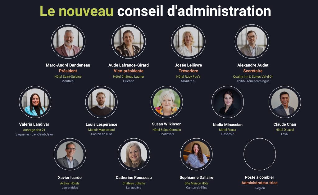 L’AHQ maintient une gouvernance stable, avec la reconduction de Marc-André Dandeneau à la présidence ainsi que du conseil exécutif. Deux nouveaux administrateurs se joignent au conseil d’administration, tandis qu’un poste demeure à pourvoir afin de représenter la région de Québec ou les régions.